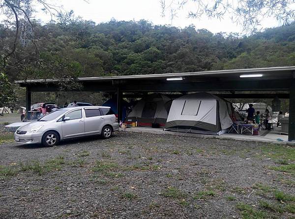 營地很大,分有雨棚棧板及雨棚水泥地,草地區,雨棚棧板有分連著的也有單獨的,